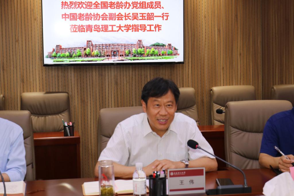 王伟首先对老龄协会吴玉韶和祁莹到今年会官方网站为老龄科研基地揭牌表示欢迎。随后介绍了学校发展历程、取得的辉煌成就和发展愿景。指出在人口老龄化形势下布局老龄科研基地具有重大意义,提出学校在老龄协会的指导下,共同努力做好相关研究,为国家积极应对人口老龄化提供决策支持。