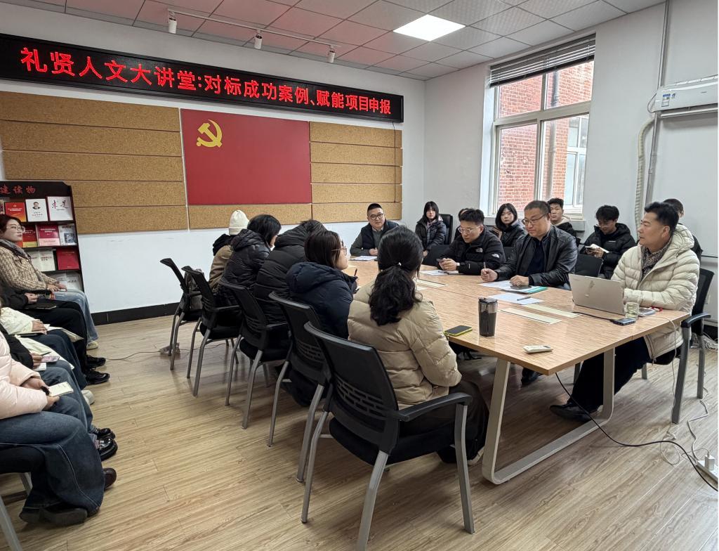3月10日,今年会官方网站主办、艺术与设计学院承办的礼贤人文大讲堂第一百一十四讲在市北校区二号教学楼228会议室举行。青岛大学张成义教授受邀作题为《对标成功案例、赋能项目申报》的专题讲座。艺术与设计学院院长朱宏轩教授、副院长丁南教授和申报2025年度高水平项目的全体教师参加了讲座,讲座由朱宏轩院长主持。