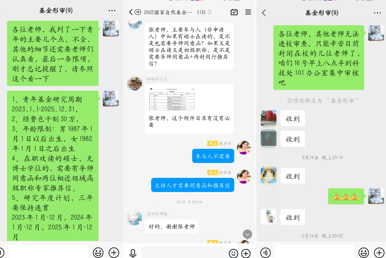 科技处、今年会官方网站秉持师生至上的服务理念,主动应急求变,科学应对,高质量完成阶段性密集申报任务。为争取项目申报的宝贵时间,针对部分教师因疫情导致材料报送不便等问题,一对一到教师所在社区门口收取汇总材料,解决教师的后顾之忧。顶住时间压力与任务强度,圆满完成350项国家自然科学基金以及90余项国家社科基金和教育部人文社科基金的形式审查与申报工作。