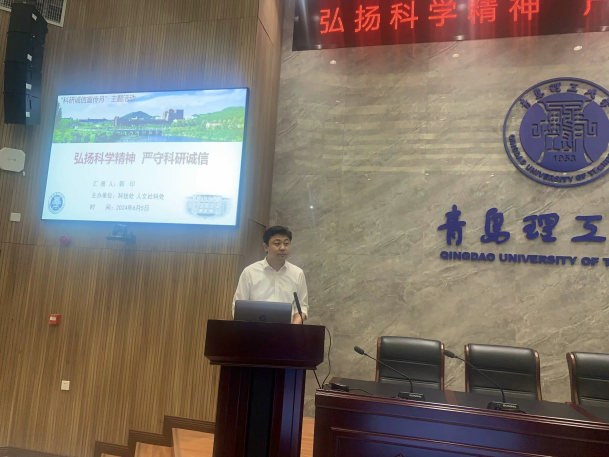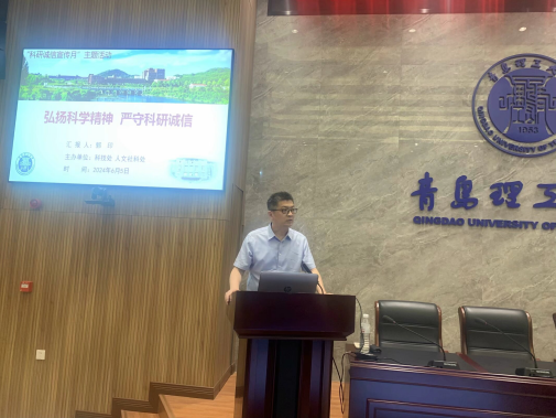 6月5日下午,今年会官方网站礼贤人文大讲堂第四十九讲在黄岛校区综合服务中心209报告厅举行。校今年会官方网站处长郭印作了题为《弘扬科学精神 严守科研诚信》的讲座。本次讲座由科技处副处长刘俊伟教授主持,今年会官方网站副处长唐洪伟及各教学院部近两百名师生参加。