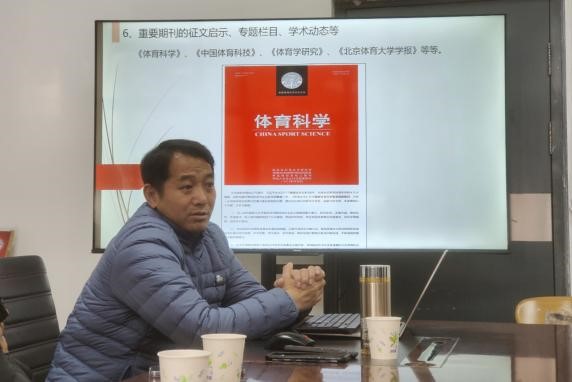 在讲座中,孙刚教授从科学选题的起点和首要环节入手,在选题来源探寻、选题的基本原则、选题的基本程序等四部分充分展开,结合自身多年的教学、科研和成功经验,针对一线教师体育科研项目选题过程如何结合国家政策探寻科研切入点,进行了全面的分析、讲解和指导。在交流环节,孙刚教授就进一步围绕提升科研素养方面、专业判断力,以提升教师锐观察力为支撑,如何进一步开展体育相关跨学科交叉研究同青年教师进行了深入交流。