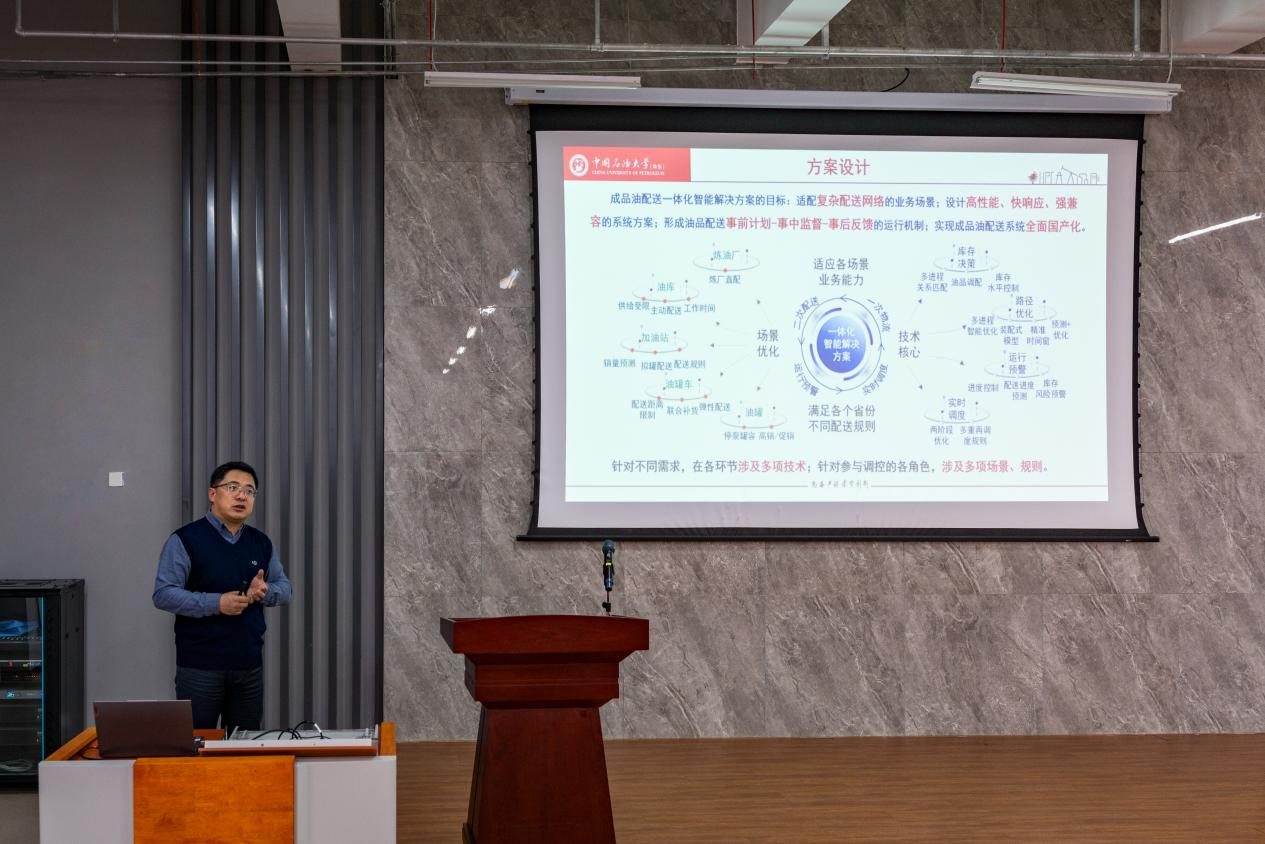在讲座中,徐小峰首先对成品油配送的研究背景进行了详细的讲解,成品油配送作为我国能源供给链条中至关重要的一环,其需求预测、库存管理和运输调度等环节直接影响着能源供给的安全稳定。当前我国成品油智能配送行业存在诸多弱点:依赖外国软件、系统各环节孤立、末端环节软件过度依赖等。为解决这些问题,徐小峰团队构建了一体化智能解决方案,旨在实现系统全面国产化,提高系统性能和运行效率。该解决方案涵盖了“库存决策-路径优化-运行预警-实时调度”等多个关键环节,旨在适应复杂的配送网络,提高系统的性能和响应速度。在实施阶段,徐小峰老师团队对合理库存管理、优化油罐销售、提升配送效率等五个方面依次提出了解决措施。最后徐小峰展示了模型算法,该模型算法已在全国多个省市上线测试。