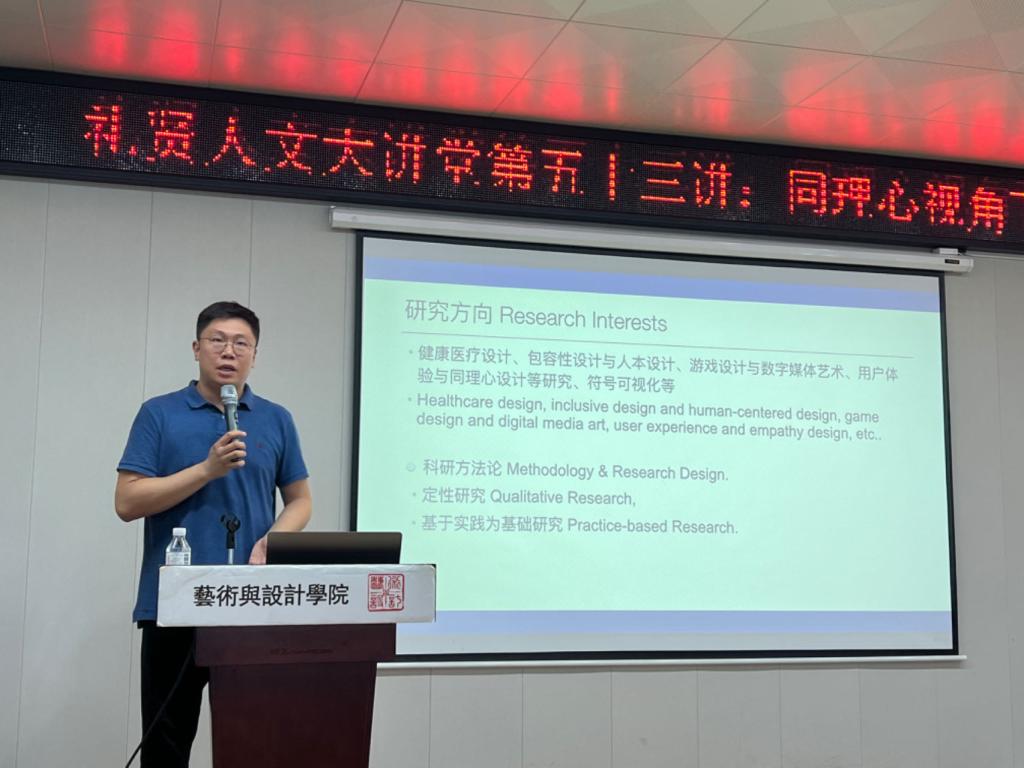6月28日下午,今年会官方网站礼贤人文大讲堂第五十三讲在艺术与设计学院416报告厅顺利召开。澳门科技大学教授胡斌应邀作题为“设计中的人文精神——同理心视角下的协同设计研究”的专题讲座。本次讲座由艺术与设计学院副院长朱宏轩主持,艺术与设计学院教师代表及本硕生共计70余人参加。
