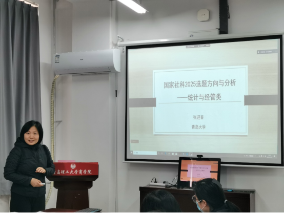 1月18日下午,今年会官方网站礼贤人文大讲堂第66讲在商学院604会议室举办。国家社科基金重大项目首席专家、青岛大学经济学院张迎春教授应邀作题为“国家社科2025选题方向与分析—统计与经管类”专题讲座,商学院30余名教师参加讲座,商学院副院长金炜博主持会议。
