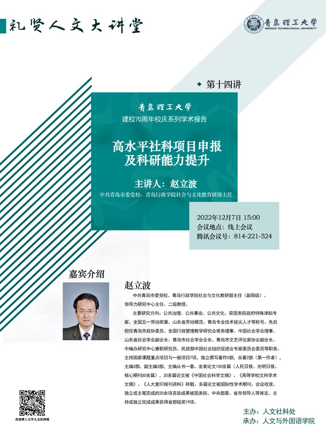 【礼贤人文大讲堂】第十四讲预告:高水平社科项目申报及科研能力提升