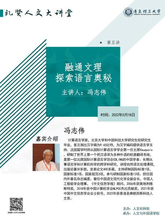 【礼贤人文大讲堂】第五讲预告:融通文理,探索语言奥秘