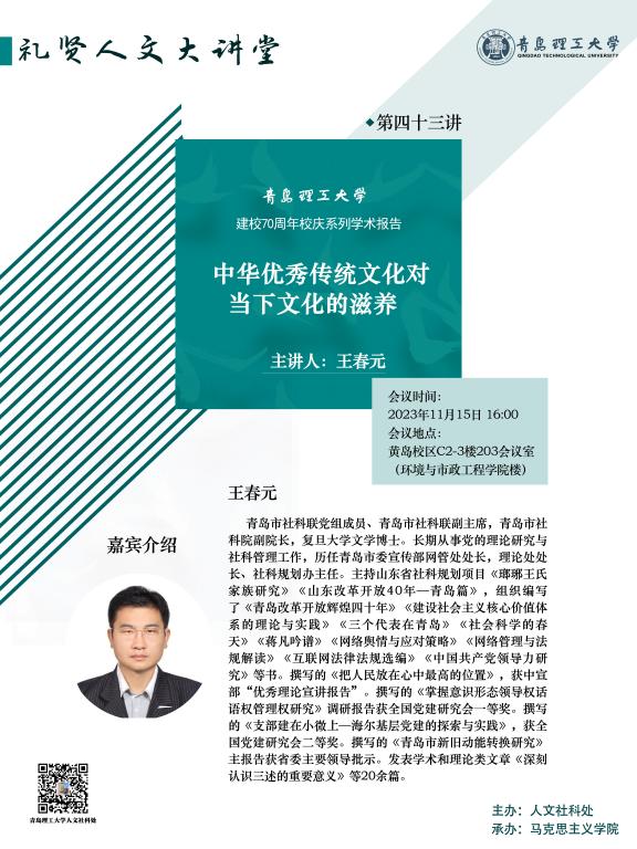 【礼贤人文大讲堂】第四十三讲预告:中华优秀传统文化对当下文化的滋养