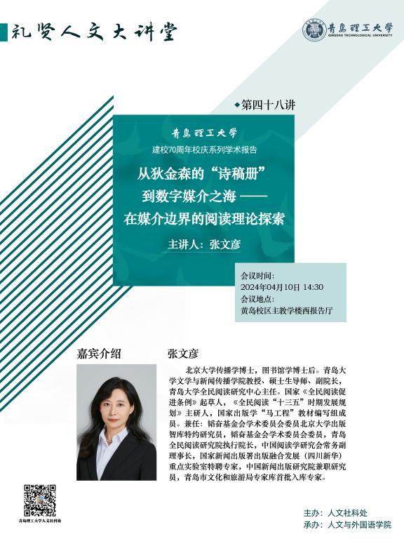 【礼贤人文大讲堂】第四十八讲预告:从狄金森的“诗稿册”到数字媒介之海 ——在媒介边界的阅读理论探索