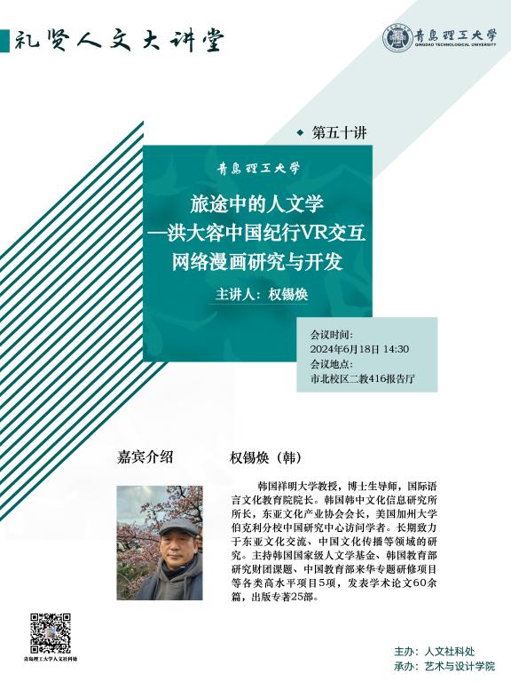 【礼贤人文大讲堂】第五十讲预告:旅途中的人文学—洪大容中国纪行VR交互网络漫画研究与开发